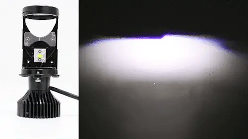 LED Headlight H4 Bulb has an innovative big low beam shade cup with a micro-optical projector (lens) on the top, that enables the low beam to show a clear cutoff line ahead. In a typical H4 bulb application, only about 30% of the raw lumens are projected on the road as forwarding illumination. With this special optic, about 90% of the lumens will be projected onto the road. The micro-optical projector (lens) is responsible for the illuminating angle and amount of the beam pattern, can reduce light loss, maximize the light-gathering ability, making the maximum lighting length up to 150m. This feature is an unparalleled performance advantage over other H4 LED headlight bulbs.